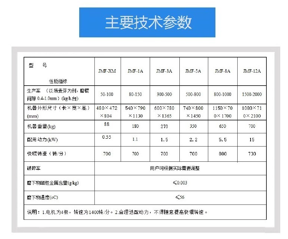 本機針對麥芽粉碎而設計,粉碎可以做到麥芽皮破而不碎,輥體齒形結構上適應麥芽粗中細配比
